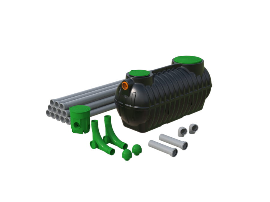 Zestaw zawiera wszystkie niezbędne komponenty do wykonania kompletnej przydomowej oczyszczalni – gotowy do montażu.