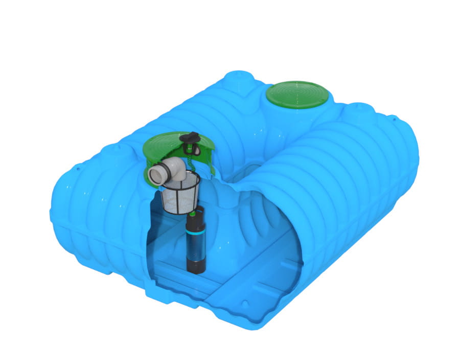 W skład zestawu wchodzą Dwa zbiorniki BOLT po 1500 l – o łącznej pojemności 3000 litrów oraz Pompa zanurzeniowa – do poboru wody i podlewania ogrodu.