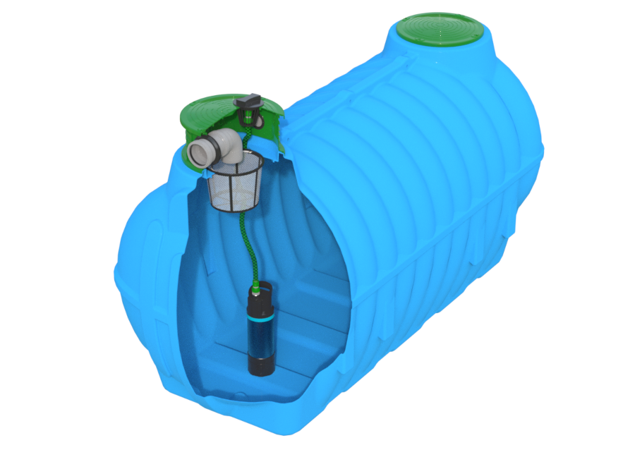 W skład pakietu wchodzi Zbiornik podziemny BOLT 3500 l – solidna, jednoczęściowa konstrukcja oraz Pokrywa z wlotem deszczowym – zabezpieczenie przed zanieczyszczeniami.