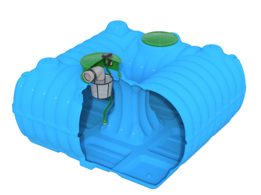 W skład pakietu BOLT 5000 wchodzi Zbiornik BOLT 5000 l – solidna, jednoczęściowa konstrukcja odporna na naciski gruntu oraz Pokrywa z wlotem deszczowym do łatwego dostępu i zabezpieczenia przed zanieczyszczeniami.