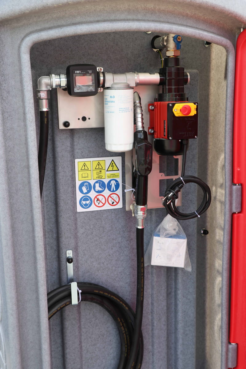 - Linia napełniająca z wlewem 2” oraz suchozłączem VK50 – wewnątrz szafy dystrybucyjnej