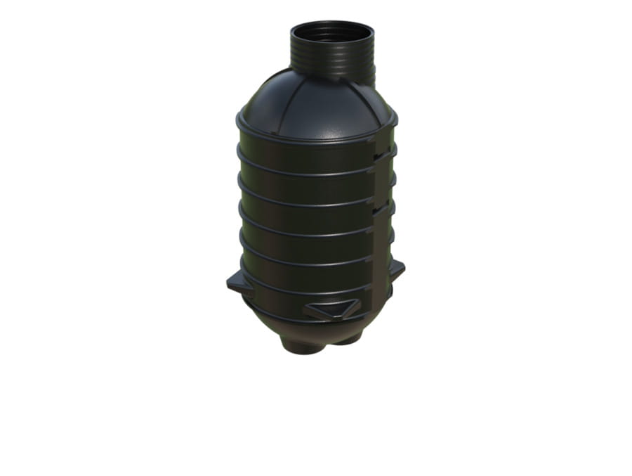 Zbiornik powstaje w technologii formowania rotacyjnego, co zapewnia jego monolityczną konstrukcję, wysoką odporność na uszkodzenia mechaniczne i pełną szczelność – eliminując ryzyko przedostania się ścieków do gruntu. Duża średnica trzonu wznoszącego (Ø1200 mm) ułatwia montaż pomp, armatury i instalacji sterujących, a także późniejszy dostęp serwisowy.
